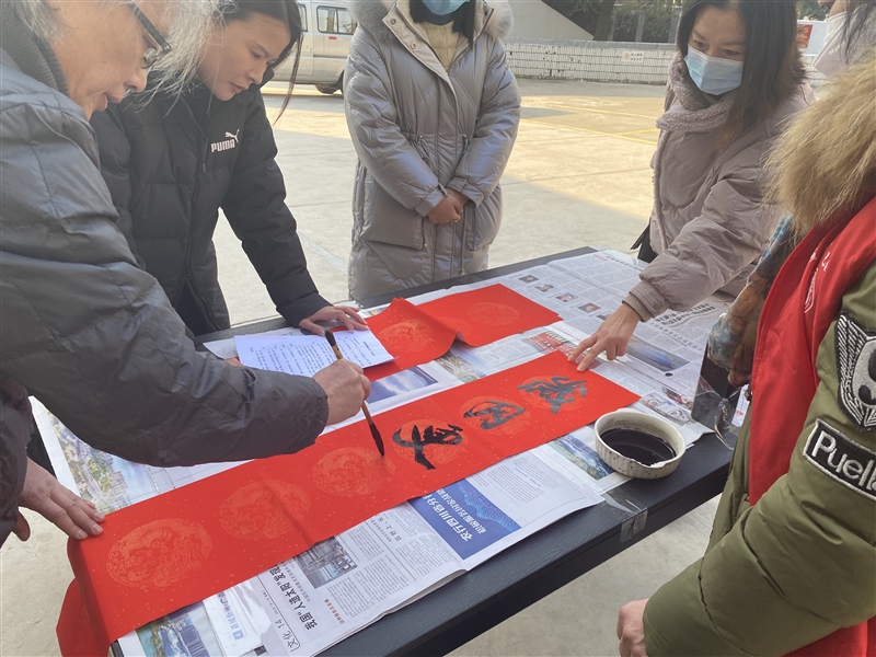 走進(jìn)社區(qū)送祝福。參與聯(lián)點(diǎn)共建昭亭社區(qū)“我們的節(jié)日·春節(jié)”新時(shí)代文明實(shí)踐志愿服務(wù)活動(dòng),以送春聯(lián)形式為社區(qū)居民送上新春祝福。活動(dòng)現(xiàn)場(chǎng),志愿者們忙前忙后傳遞紙墨,書法家們?cè)谝粡垙埣t紙上盡情地?fù)]毫潑墨,一個(gè)多小時(shí)的時(shí)間,書寫春聯(lián)等上百副。一副副春聯(lián)給社區(qū)居民們送上了新春的祝福,一張張福字更是讓大家感受到濃濃的傳統(tǒng)年味。