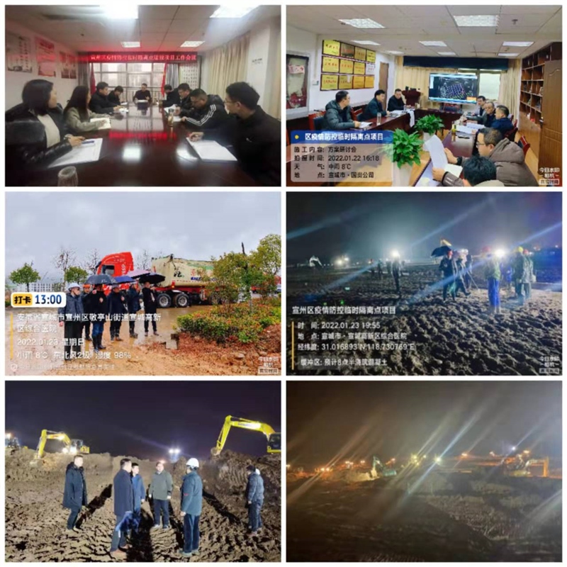 1月21日,根據宣州區疫情防控指揮部緊急部署,由區國資集團作為建設單位,鰲峰建設集團作為施工單位,在高新區綜合醫院東側地塊實施宣州區疫情防控臨時隔離點建設項目。接到任務后,區國資集團第一時間成立工作組,迅速組織建設隊伍,24小時不間斷施工,力爭以最快的速度完成臨時隔離點建設。