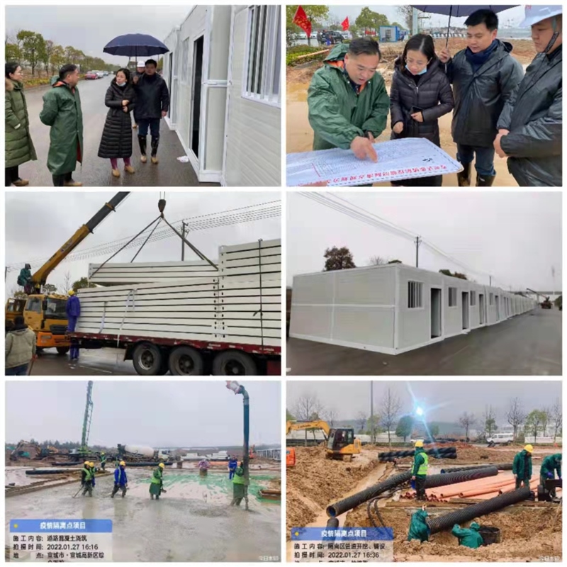 1月27日下午,宣州區政府副區長范瀟瀟到疫情防控臨時隔離點施工現場,查看工程施工進展情況,并充分肯定了項目施工進展速度。截止晚上18:00,疫情防控臨時隔離點項目集裝箱板房材料到場180多套,完成160套集裝箱板房拼裝。混凝土道路、雨污水管道和污水處理設施同步進行。面對即將到來的低溫雨雪冰凍天氣,區國資集團積極組織協調各項施工安排,施工人員全體上下團結一心,以堅決態度克服難關,全力推進,高質量完成項目建設。