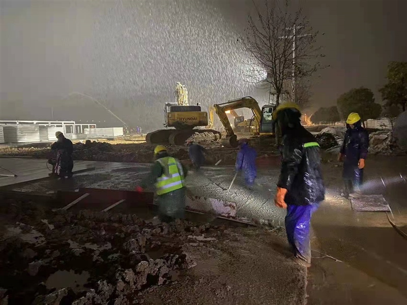 截止1月29日18:00,現(xiàn)場(chǎng)已完成準(zhǔn)備區(qū)所有混凝土澆筑,雨污水管道、室外水電管道施工完成,地坪及道路基本結(jié)束。自1月28日暴雪來襲,施工環(huán)境惡劣,一線人員不畏嚴(yán)寒,連夜雪中奮戰(zhàn),集團(tuán)公司黨員突擊隊(duì)、志愿服務(wù)隊(duì)出動(dòng)搬運(yùn)物資、修補(bǔ)設(shè)施等,以飽滿熱情和堅(jiān)決態(tài)度克服各種困難和障礙,充分展現(xiàn)了“國企加速度”。