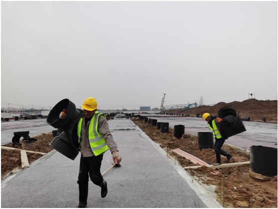 2月1日,農歷大年初一,隔離點項目室外附屬班組施工人員正在進行雨污水管道施工作業,雖然經過節前加班加點的搶建工作,隔離點項目房屋基礎工程和道路工程已全部完工,但為了保證春節期間項目現場安全及已完工程的成品保護,項目部安排了春節期間值班值守及工作部署,全力搶工期、抓進度,確保節后順利復工和項目早日交付。