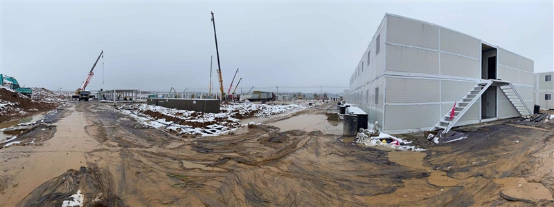 2月8日,新年的第一場暴雪終于遏制住怒吼,各搶建班組全力加速推進準備區折疊房和隔離區打包房的安裝,室內淋浴房、水電及室外電力電纜井砌筑等多個作業面施工全面展開,現場掀起節后施工新一輪大干熱潮。
