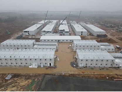目前,準備區188套折疊房、緩沖區活動板房、污水處理點用房已安裝完成,隔離區打包房安裝已完成80%,室內水電、家具、電器、南邊綠化工程、室外強電工程、污雨水管道修補、部分道路也在緊張施工中。