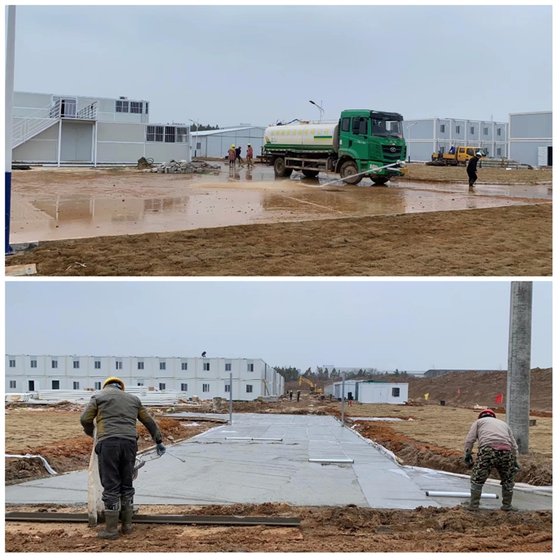 項目建設現已進入最后沖刺階段,各參建單位風雨同舟、日夜兼程,全面加快施工收尾進度。截至目前,板房吊裝工作全部完成,內部裝飾裝修施工、空調、淋浴房、熱水器安裝等工作緊張進行,周邊綠化、室外路燈、圍欄等都在有序施工。在隔離點項目建設上,區國資集團始終堅持快打猛攻、速戰速決,一鼓作氣確保在本月底之前全面建成交付。