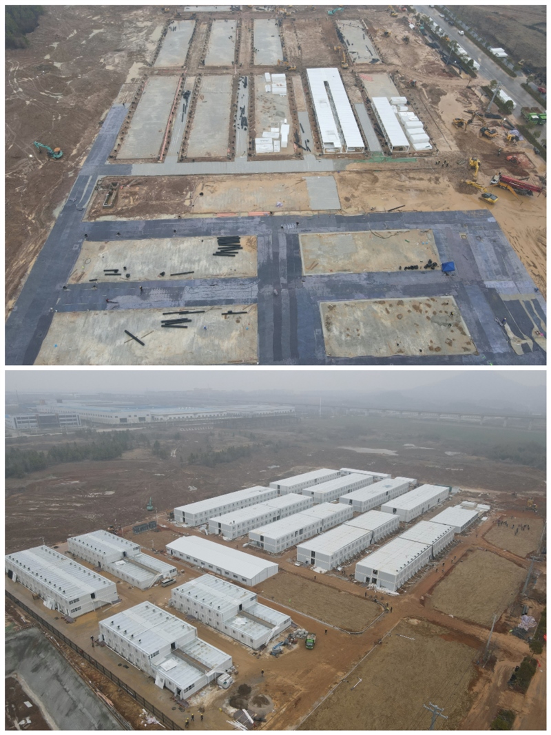 自1月21日宣州區疫情防控指揮部緊急部署由區國資集團承建宣州區疫情防控臨時隔離點項目始,集團即刻投入到緊張有序的搶建工作中。冬季施工難度相當大,項目更是遭遇持續降雨、二次大雪和連續降溫,氣候條件十分不利。然而國資集團不畏困難,不失時機,抓住一切機會搶工程,不論白天、黑夜、刮風還是下雨,始終緊抓建設不放松,克服持續陰雨天氣,大干6個晝夜,突擊144小時連續作業,完成25000平方米混凝土澆筑。更是在春節期間不停工,不斷檔,頂著暴風雪、克服春運帶來的采購、人工、交通等一切不利因素,在元宵節前完成準備區188套、隔離區744套打包房吊裝工作。