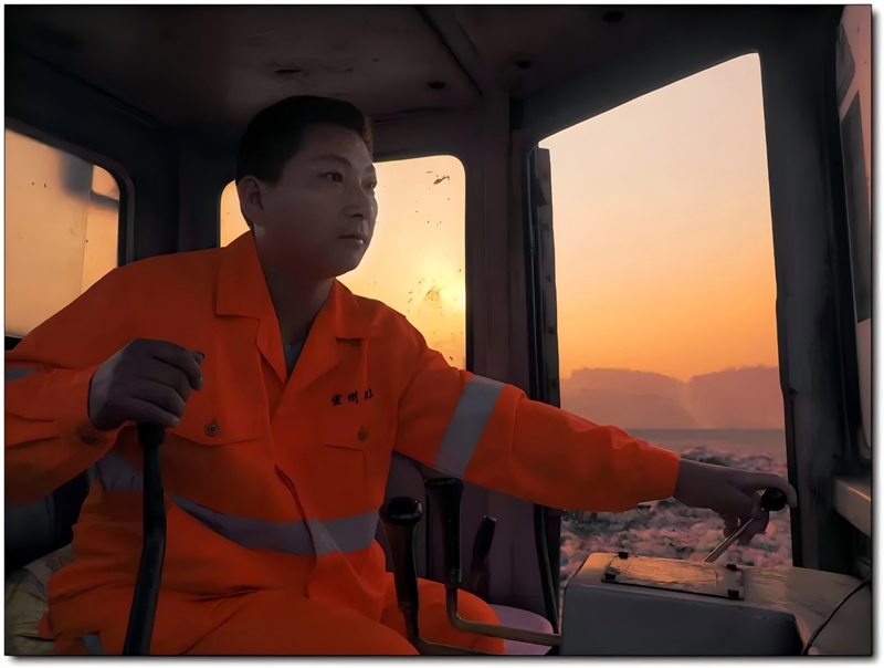 徐開鋒臨危受命,在填埋場(chǎng)當(dāng)推土機(jī)駕駛員。每天的工作就是把400多噸的垃圾推平壓實(shí)。每到夏、秋季節(jié),臭氣熏天的垃圾引來更多的蒼蠅“光顧”,用徐開鋒同事的話說,“遠(yuǎn)看徐開鋒就好像穿了一副‘將軍鎧甲',蒼蠅扒在他的臉上、手上、背上……”彼時(shí)的徐開鋒已經(jīng)是一名7歲女孩的父親,但為了應(yīng)對(duì)繁重的工作,他每天5點(diǎn)鐘就騎著摩托車出了門,等到晚上回家時(shí),女兒多半已經(jīng)睡著了。“領(lǐng)導(dǎo)把我安排到這個(gè)崗位,我就要崗位上做出個(gè)樣!”,正是胸懷這份“執(zhí)拗”,他在填埋場(chǎng)推土機(jī)駕駛員崗位上堅(jiān)持了11年。